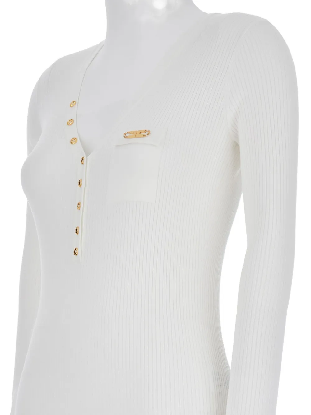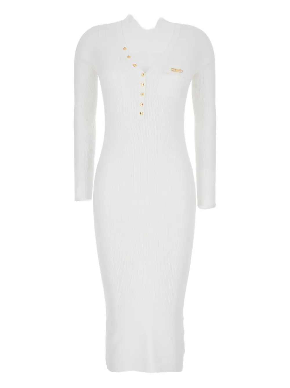 Abito lungo in costine con maniche, scollo a V e bottoncini. Tasca sul davanti con dettaglio in oro. Vestibilità regular,