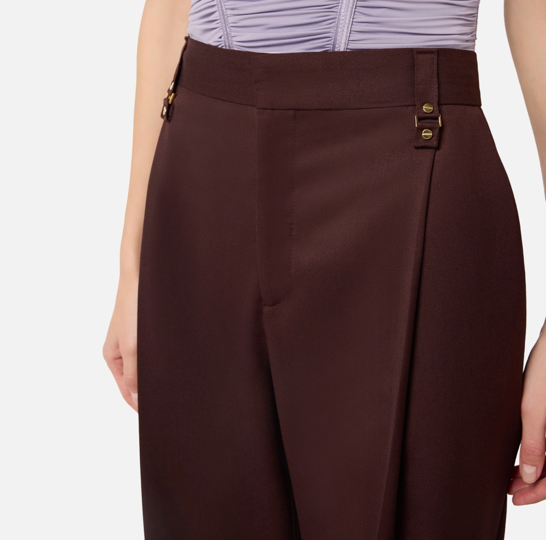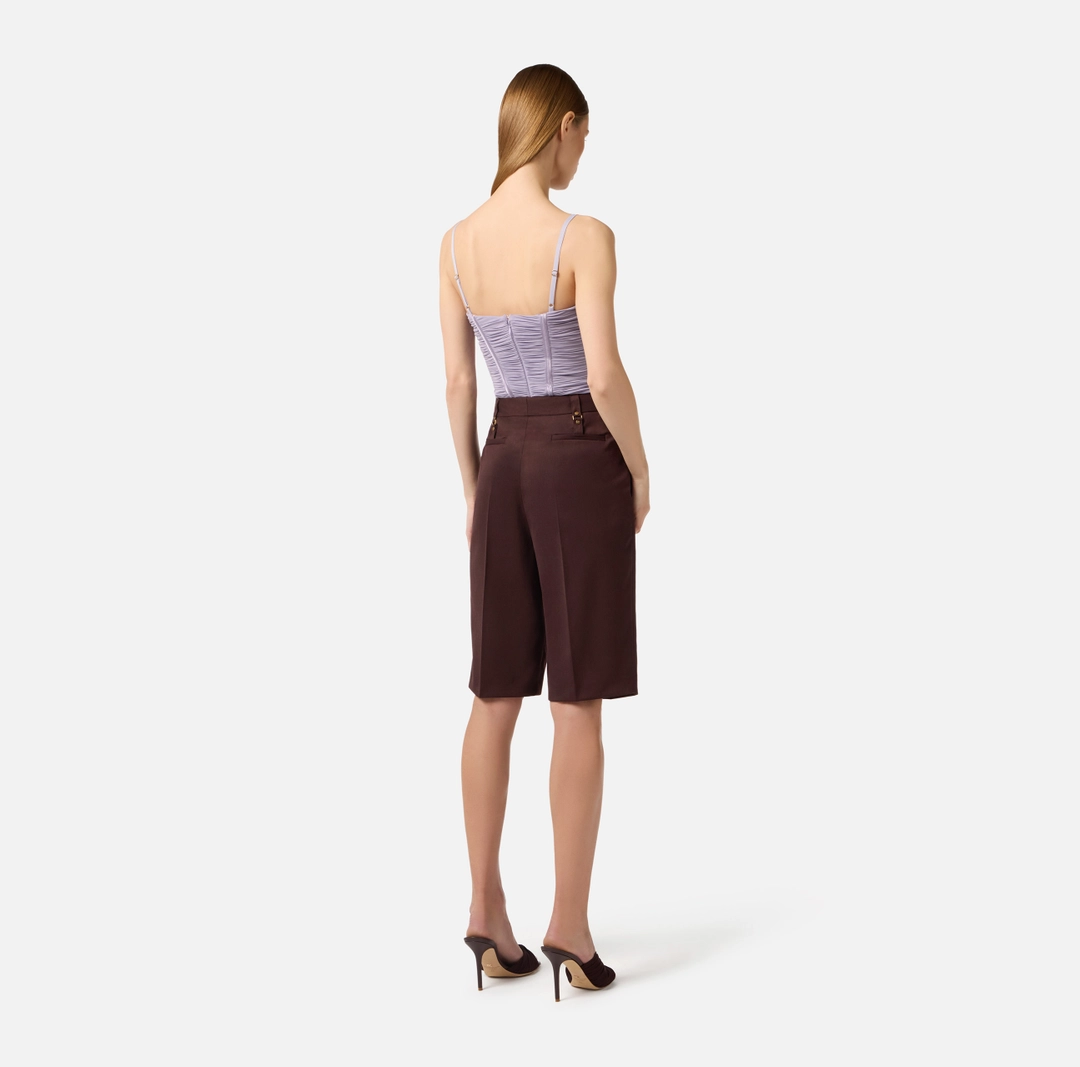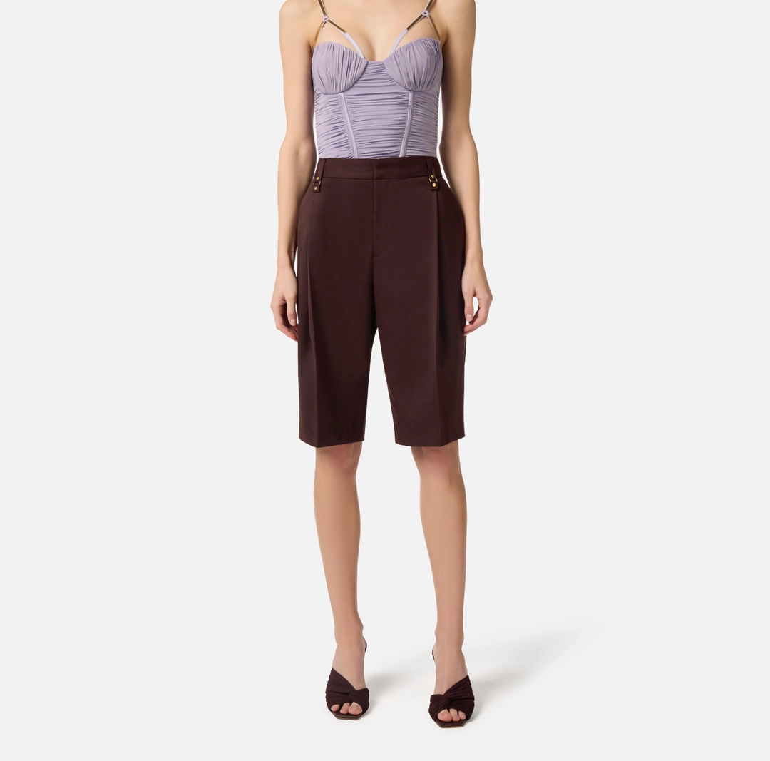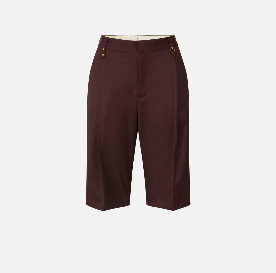 Pantaloni bermuda in fresco lana. I passanti sul fascione sono arricchiti da dettagli di rivetti e anelle, per una nota di carattere. Vestibilità regular.