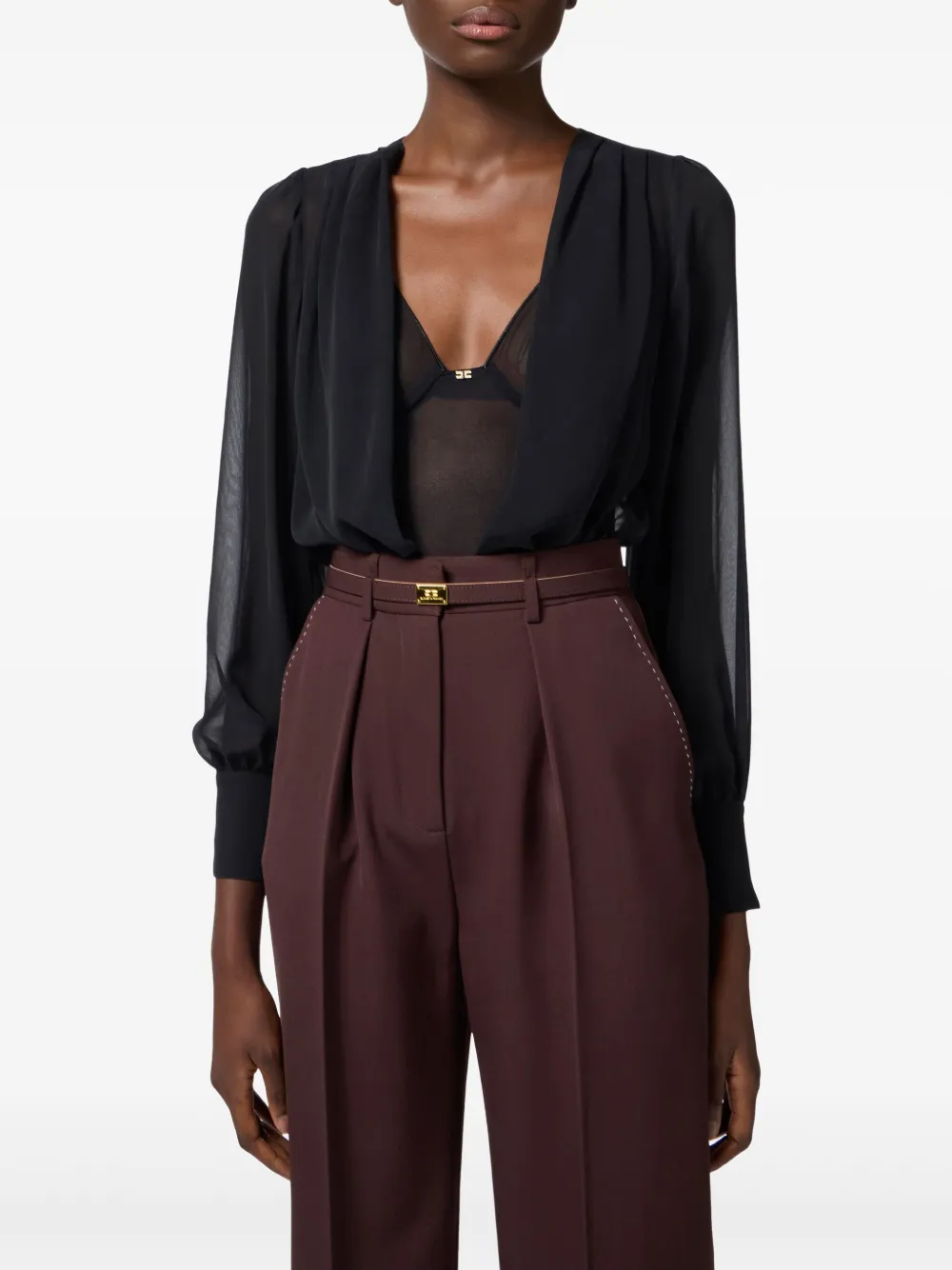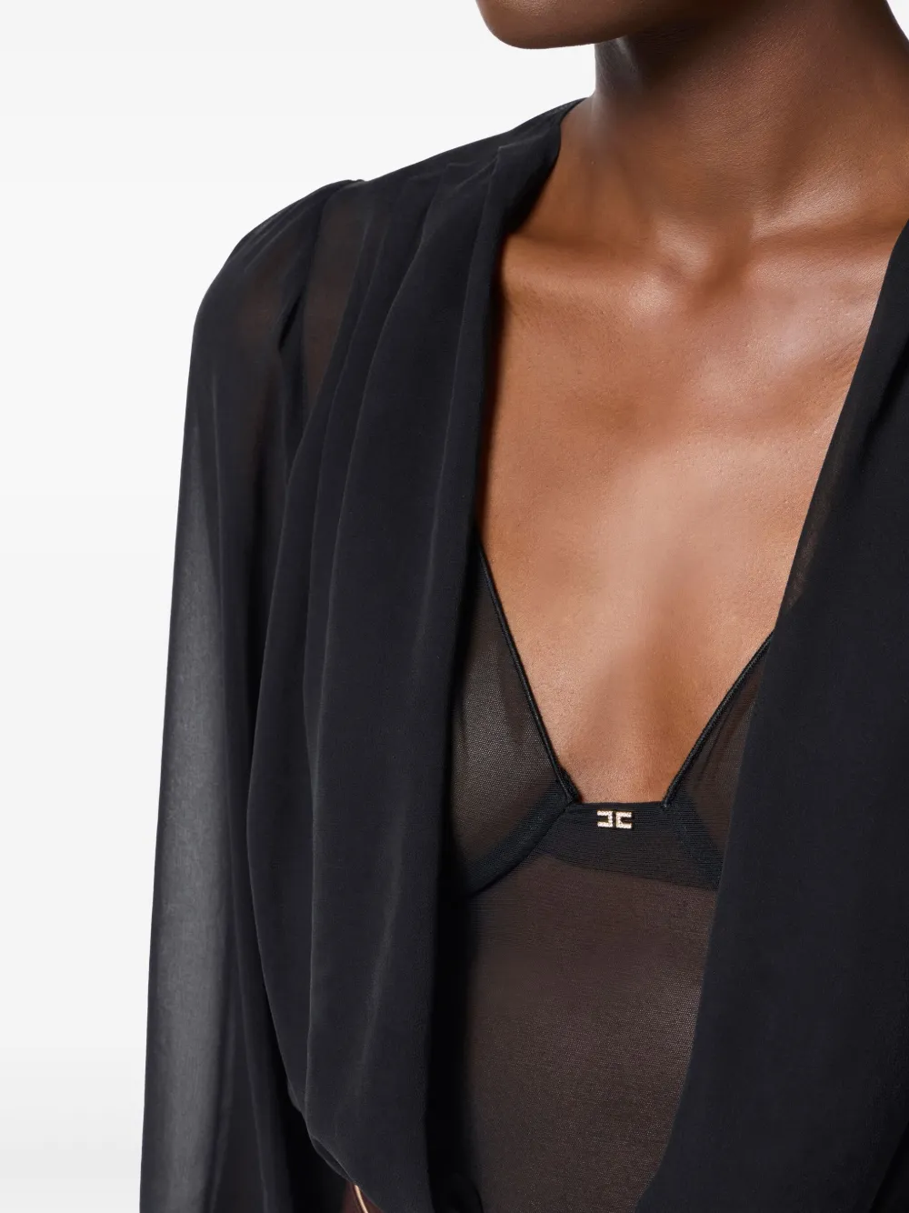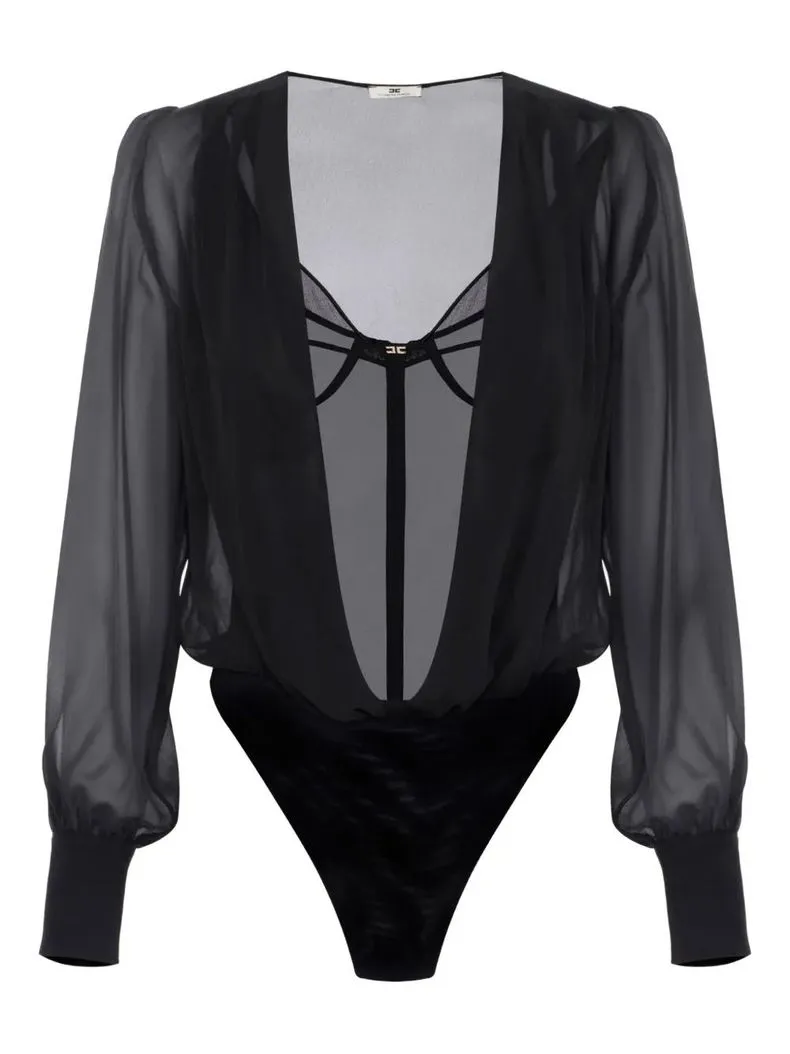 Body in tulle con trama elasticizzata. Si distingue per le doppie spalline che creano un motivo a V sul davanti.