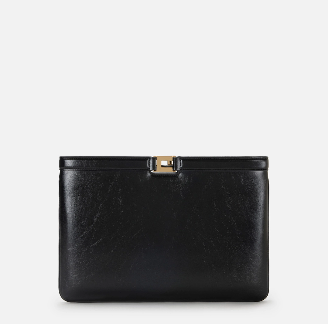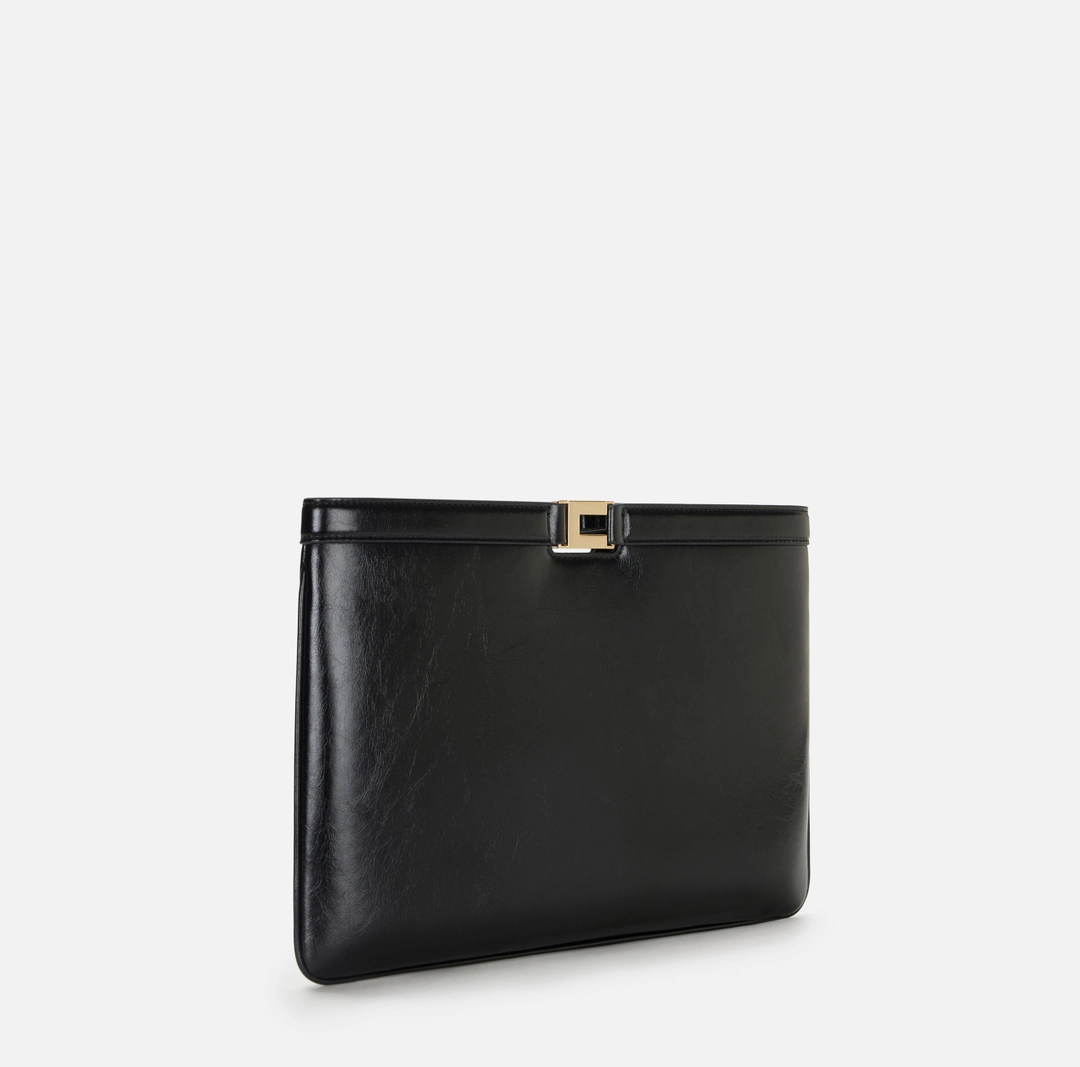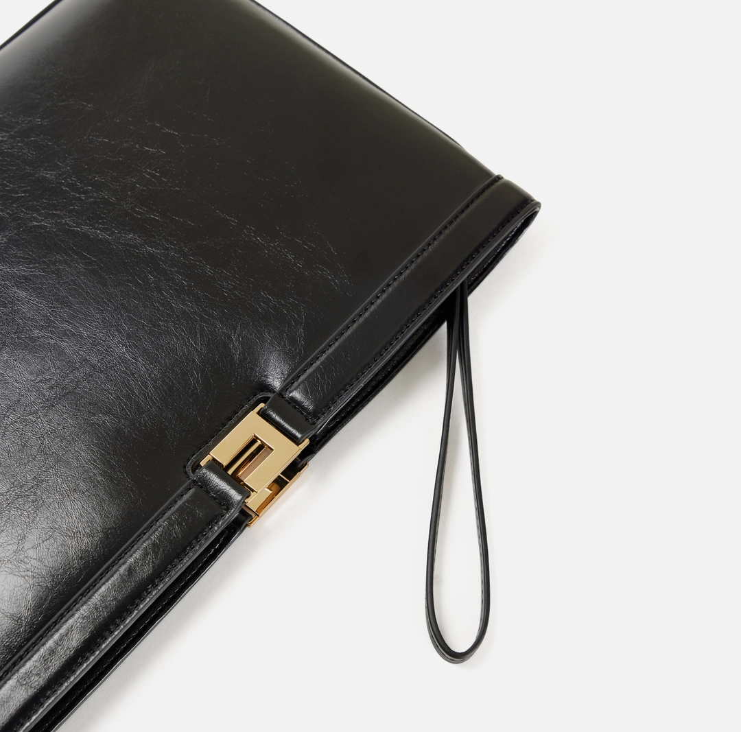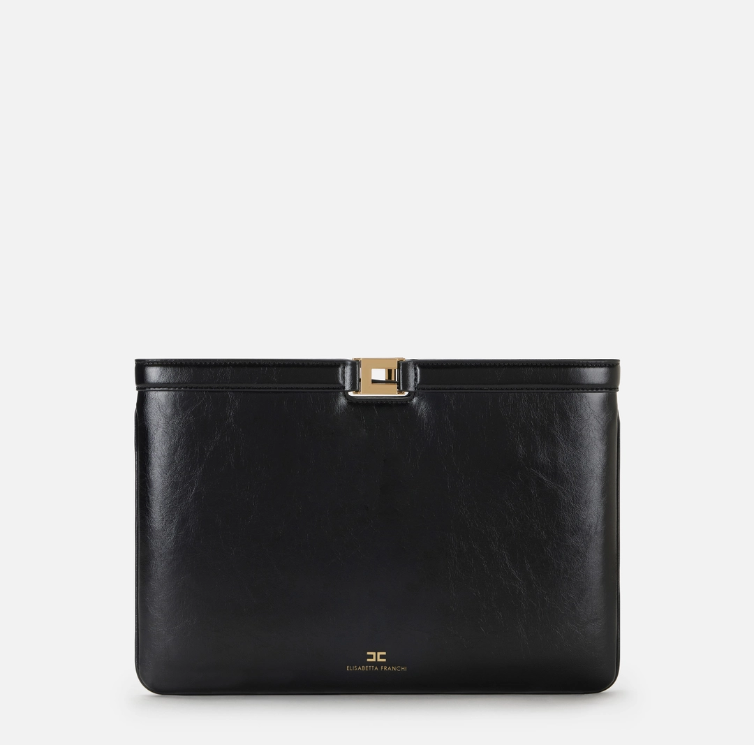 Borsa realizzata in materiale sintetico con texture effetto naplak. Con design a busta, ha dettaglio in metallo dorato con logo per una nota luminosa.