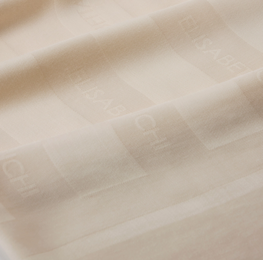 Foulard quadrato in viscosa e modal tinto in capo. Si distingue per il pattern a righe con logo che dona movimento all’accessorio. Cornice in tinta unita con bordi sfrangiati.