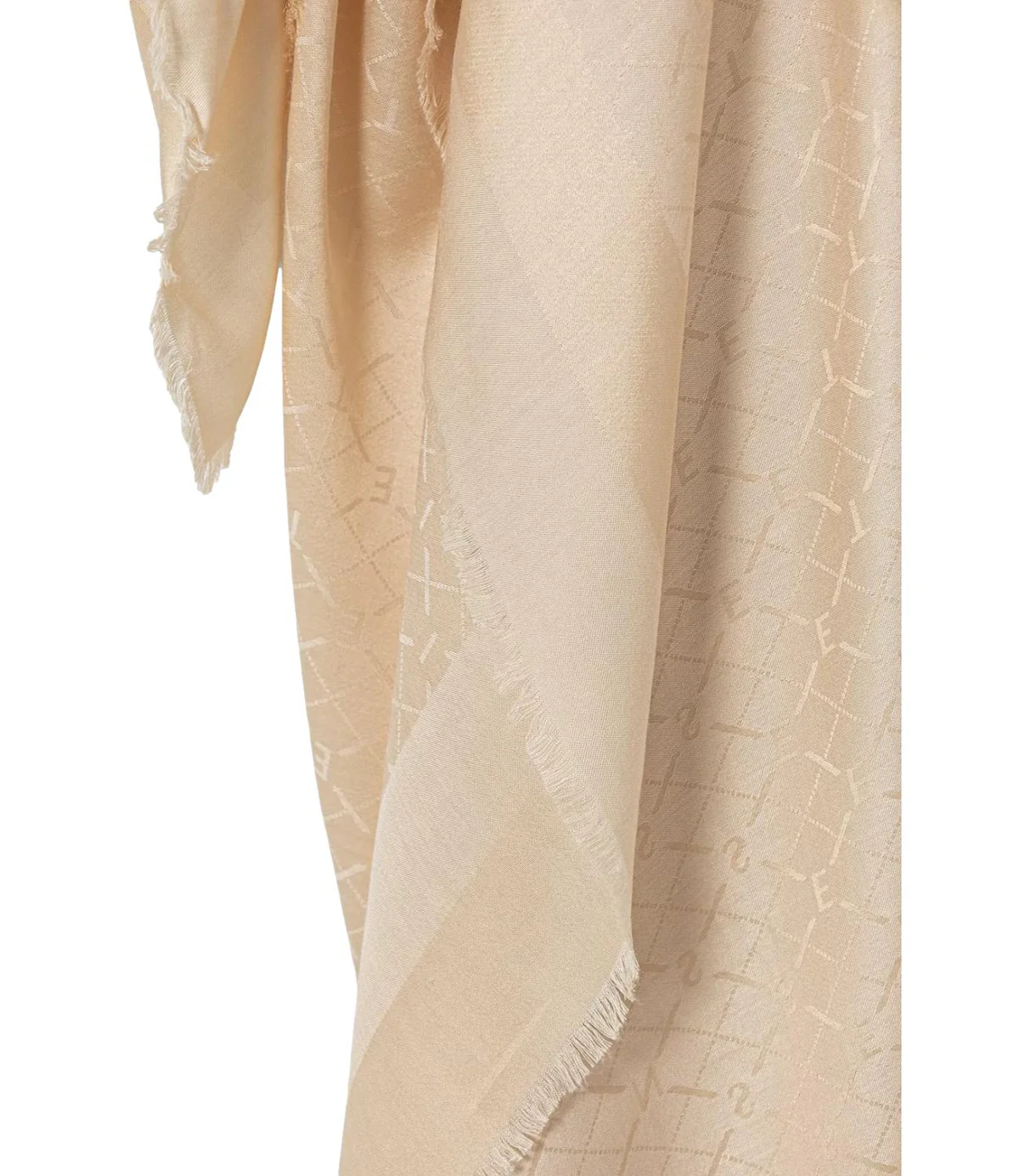 Il mix di poliestere e viscosa crea una consistenza morbida che non si sgualcisce facilmente. I bordi sfrangiati aggiungono movimento al tessuto, mentre il motivo monogram discreto dona carattere senza essere invadente. Si avvolge facilmente intorno al collo o si porta sulle spalle come uno scialle. Il taglio regolare si adatta a diversi stili di annodatura.