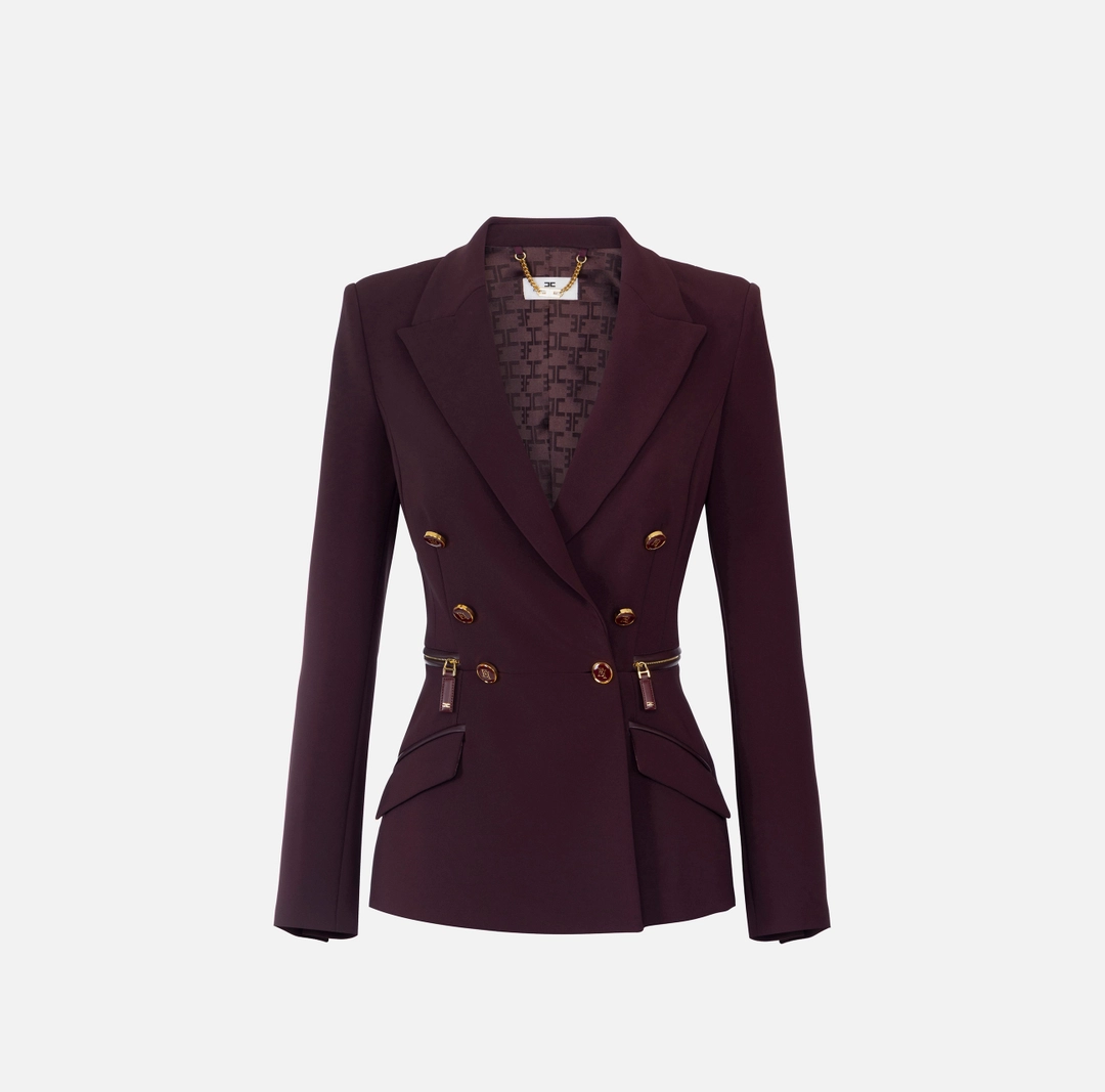 Giacca doppiopetto in crêpe leggero. Il blazer ha spalle strutturate, rever a lancia, patte applicate. Impreziosita dai bottoni smaltati con logo e dai dettagli di zip che definiscono il punto vita. Vestibilità slim. Parte della collezione Essential, per costruire il guardaroba perfetto.