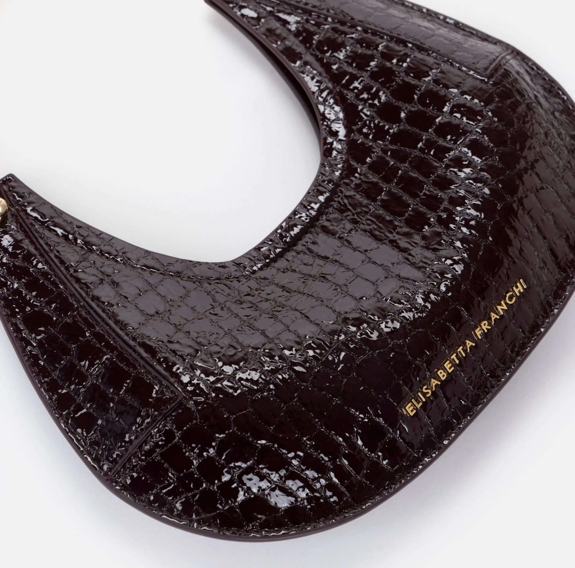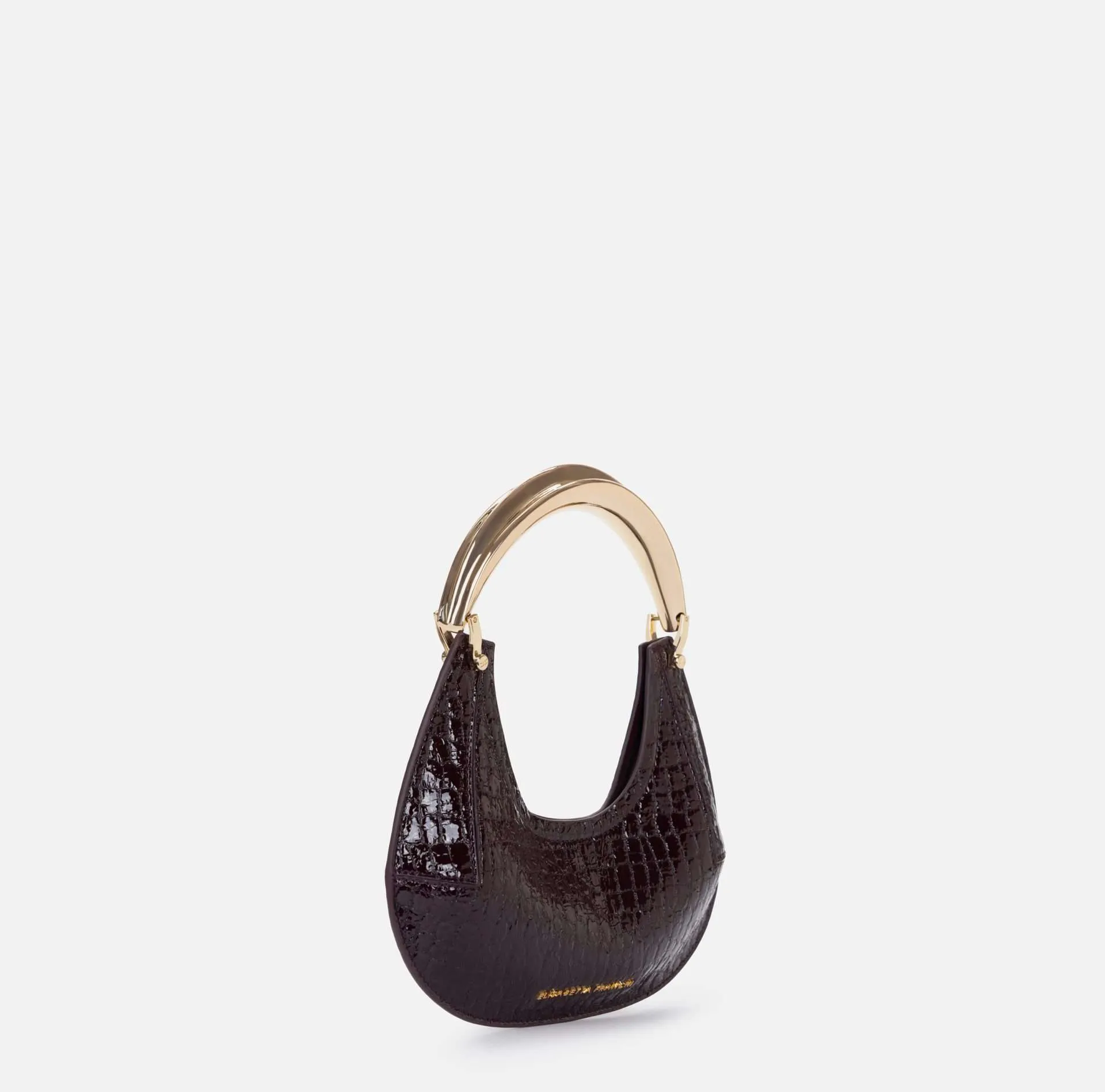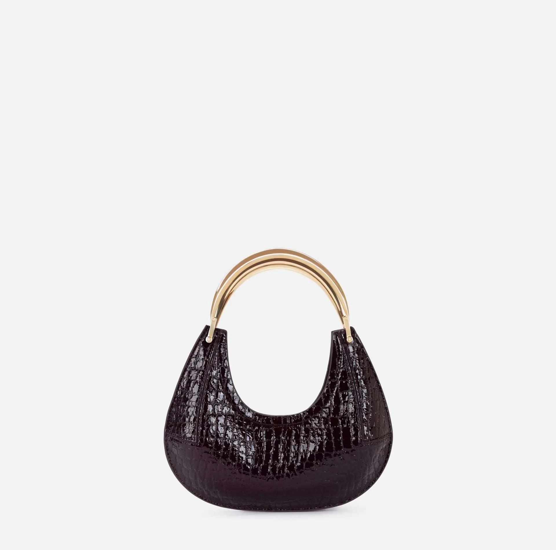 Borsa hobo piccola realizzata in materiale sintetico effetto pelle. La texture con stampa cocco dona carattere all’accessorio, impreziosito dal manico gioiello in metallo dorato. Logo al fondo.
