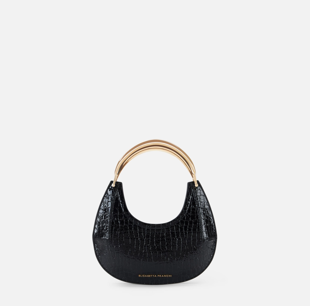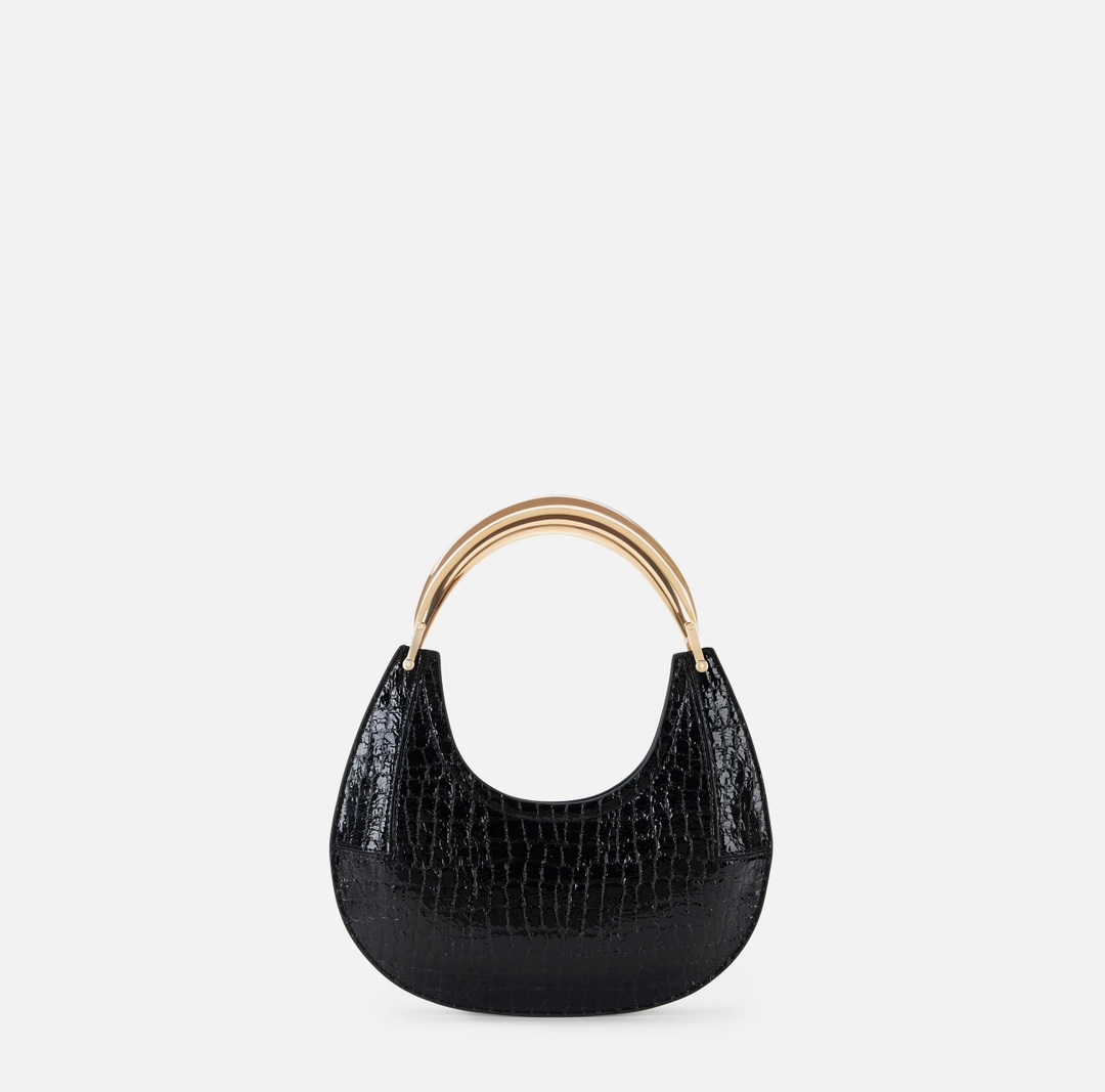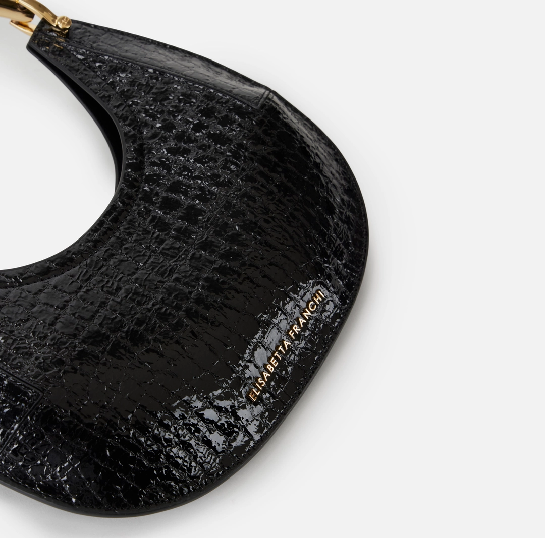 Borsa hobo piccola realizzata in materiale sintetico effetto pelle. La texture con stampa cocco dona carattere all’accessorio, impreziosito dal manico gioiello in metallo dorato. Logo al fondo.