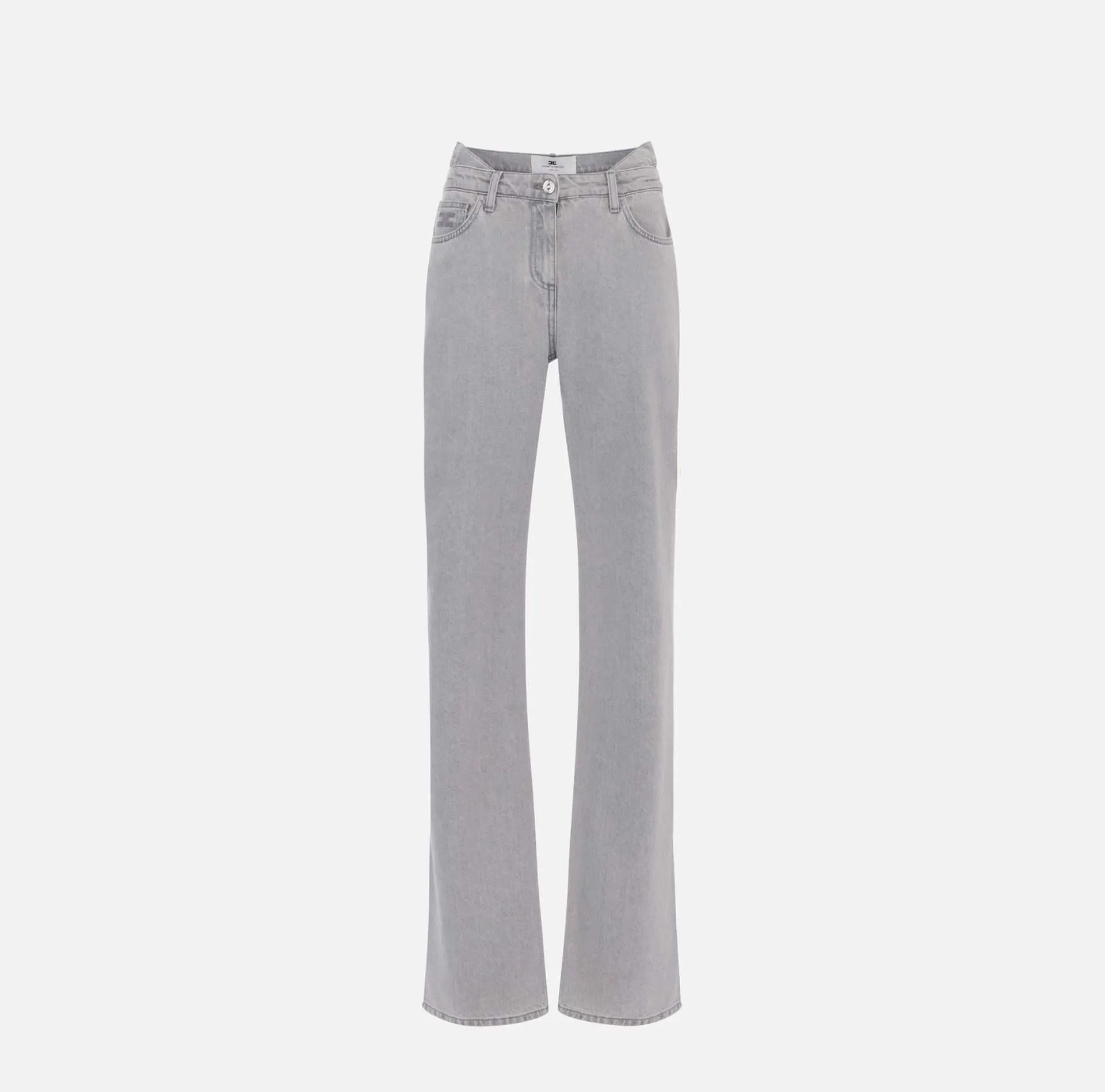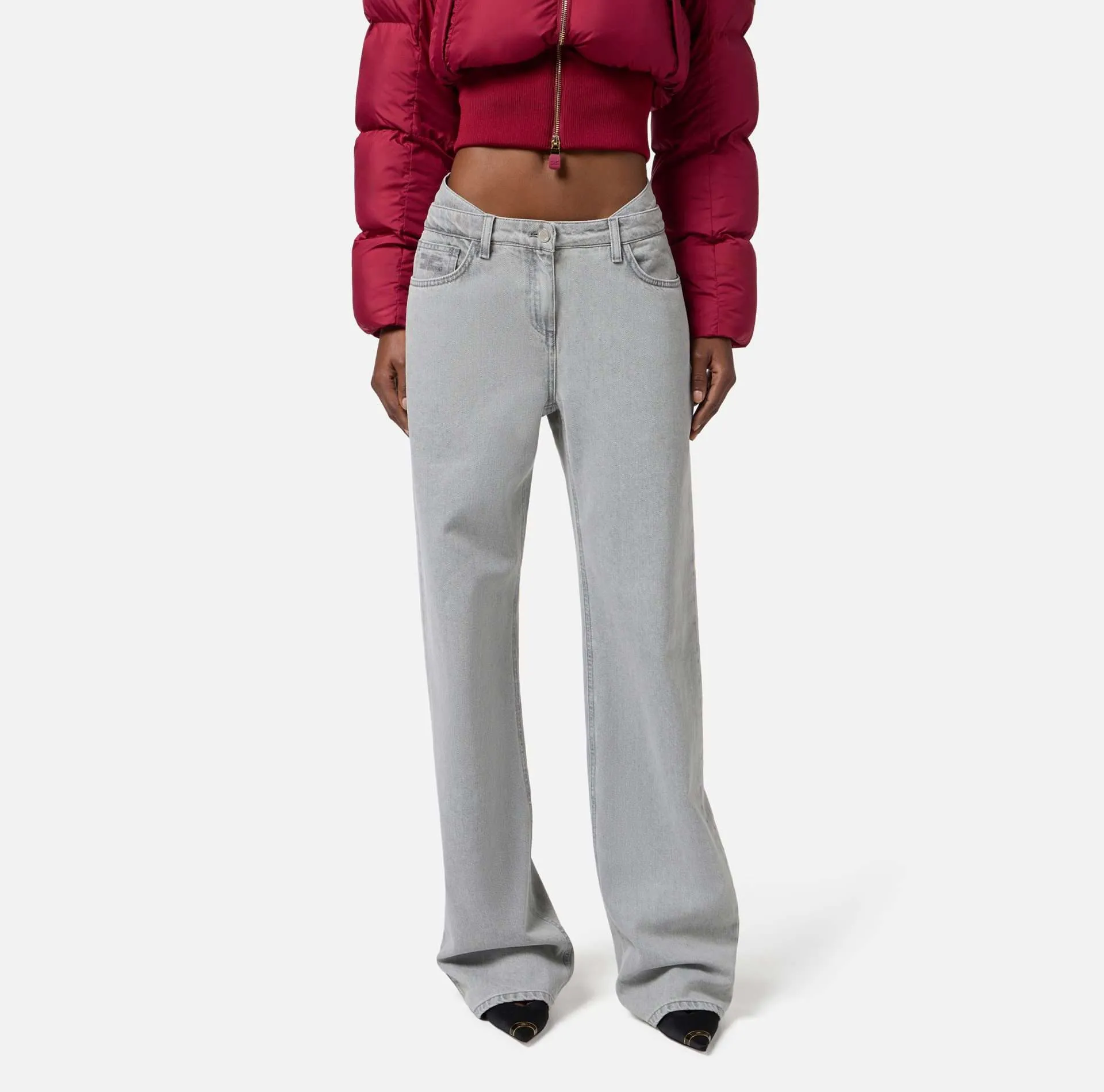 Pantaloni in denim con costruzione a vita bassa e gamba a palazzo. Si distinguono per il cintone doppio che crea tagli inediti sui fianchi e sul retro. Ispirati agli intramontabili modelli cinque tasche, hanno ricamo con logo sul taschino anteriore. Etichetta sul retro. Vestibilità over.
