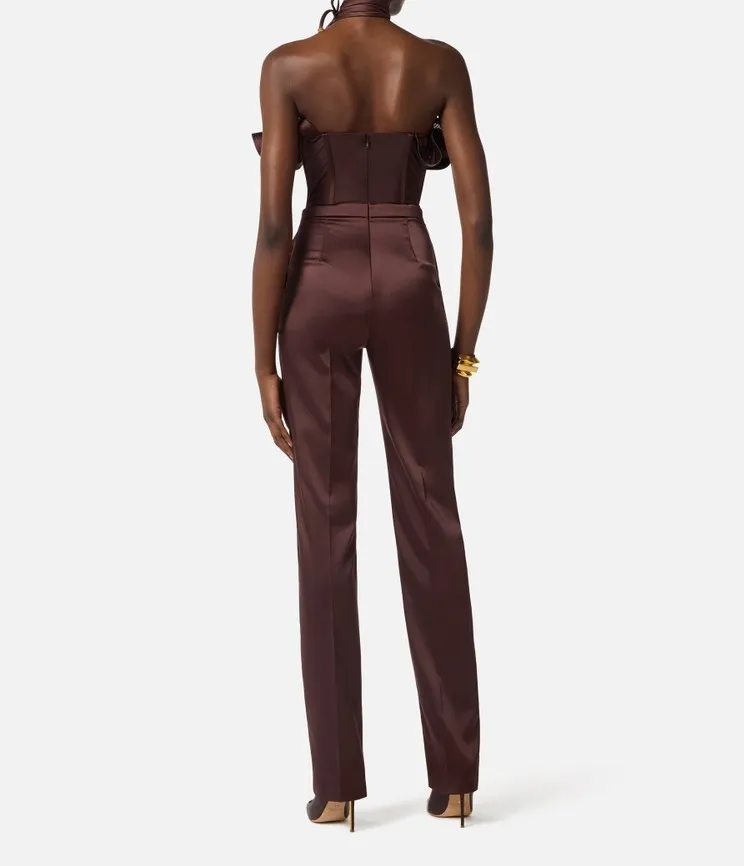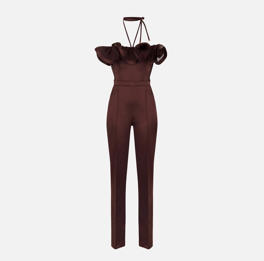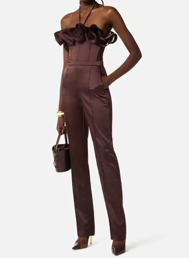 Tuta in raso stretch con maxi ruche