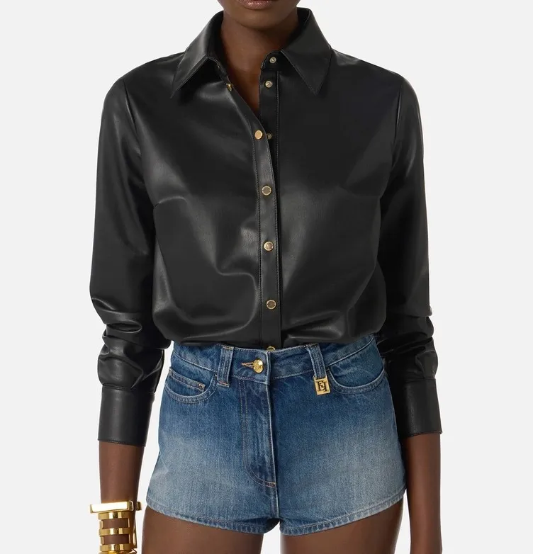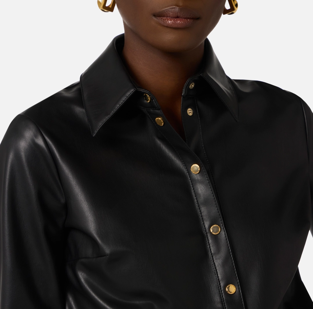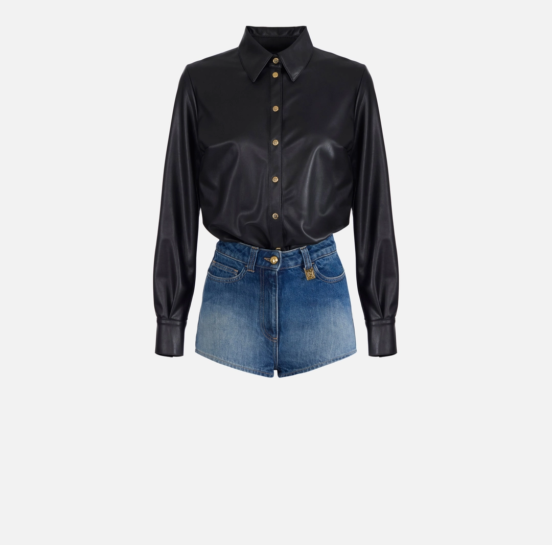 Tuta corta bimateriale. Il top è realizzato in tessuto effetto nappa, ha colletto a camicia e maniche lunghe. Gli shorts sono realizzati in denim e sono impreziositi dal dettaglio con logo su un passante. Tasche posteriori di cui una personalizzata dal nastro diagonale con logo. Vestibilità regular.